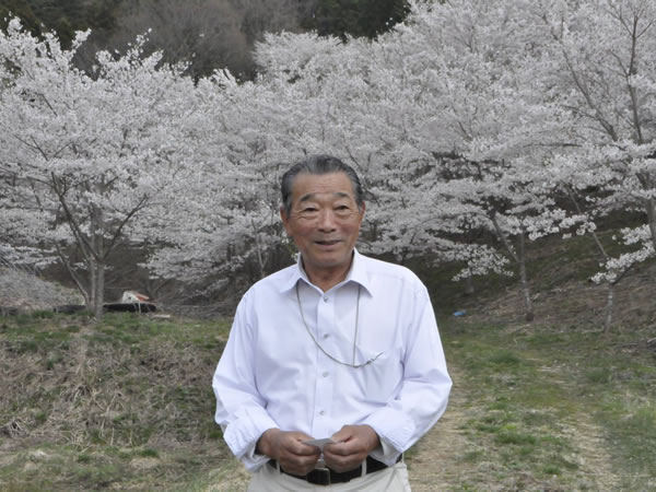 この桜の森を一人で作り続けた飯舘村の会田征男さんに会った。桜も会田さんも私たちを歓迎してくれた。奥さんも”桜のおふかし”を拵えてくれた。