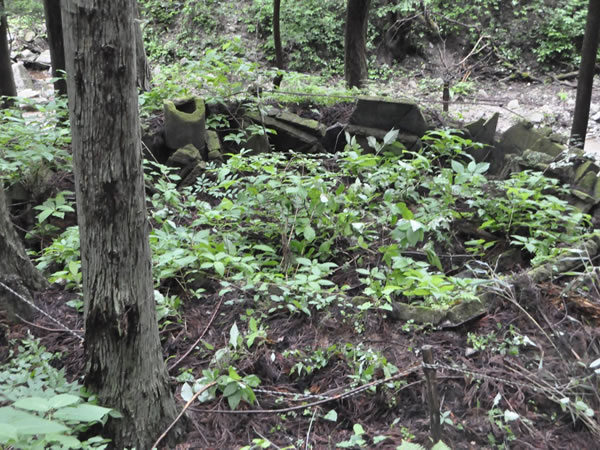 大熊町小塚の川のせせらぎを聞きながら少し森に入るとそこに「製炭試験場」で試作されたコンクリートの窯があった。今は土台だけであるが六角形の窯。煙突が2カ所あり一度に百俵の炭を焼くことができたという。(平常の粘土で作られた窯では25俵) 60数年間「炭」の力(養分)を吸い上げた窯の周りの杉だけ「幹」が太い。「炭」には何かを浄化し森を育む力がある。素晴らしい。