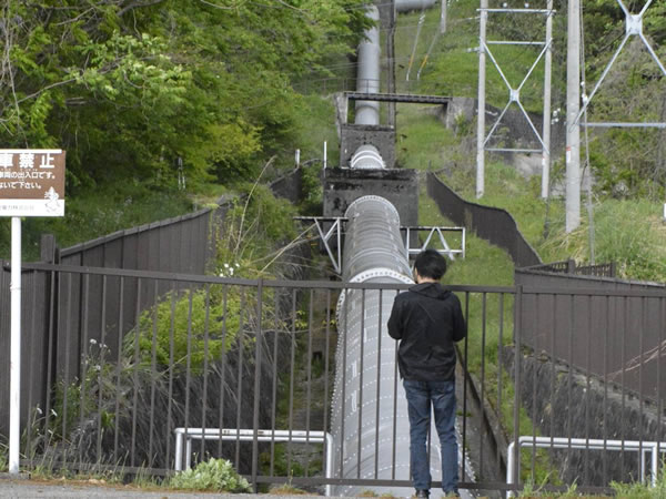 水取口の道管は見えるが排出口が見えず 直接浄水所へと流しているよう 石部桜のすぐ東 会津盆地への水の供給源