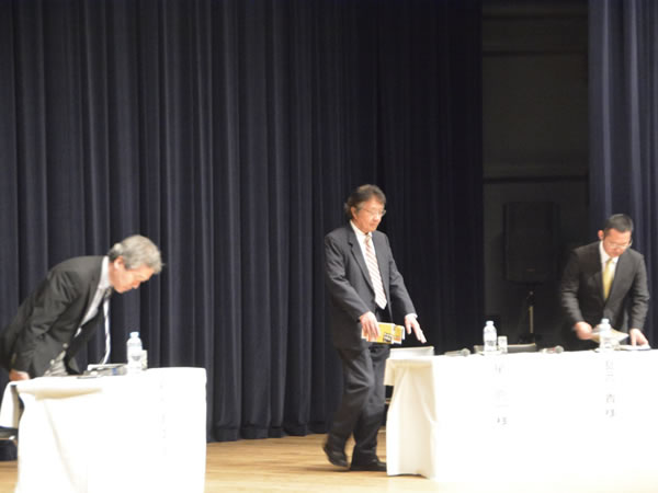 司馬遼太郎さんから二十一世紀を生きる私たちへのメッセージ「会津藩は封建時代の日本人がつくりあげた藩というもののなかでの最高の傑作」。そんな切り口から始まった全国城下町シンポジウム會津大会。第1部では、司馬遼太郎記念館館長上村洋行さんの「日本人とは」や「これからのまちづくり」がテーマの基調講演。第2部は「日本人が忘れかけている魂 (こころ)」幕末の日本人が抱いていた「日本」とその後。地域の文化や、風土、精神性。会津は「敗北」を抱えながら、その精神を今もなお維持し続けている 「會津」。もう少し時間があれば面白い展開があったろうシンポジウム。コーディネーターの赤坂さんはちょっとタジタジだったかな?敗北という辛酸を知った からこそ本当の優しさを知っているのが会津人なのでしょうね。ちなみに若松城前の司馬遼太郎文学碑は福島県の天然石「磐梯石」が使われているそうです。