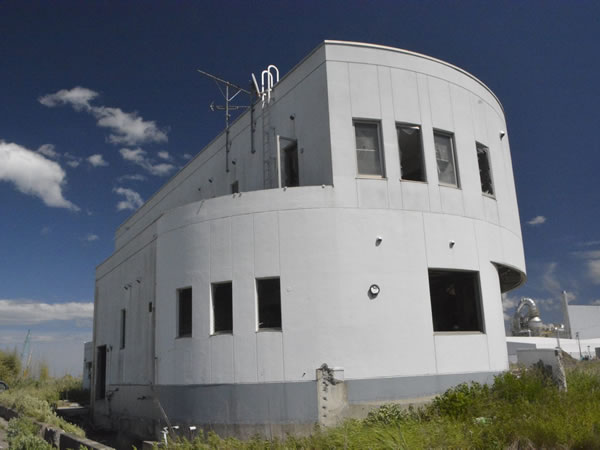 一見モダンな建物ですが、海岸が近いため波の高さは2階(超)まで届いています。