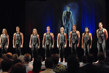 葉羽 レーザー・レーサー(LZR RACERR)はイギリスのSPEEDO社が開発した競泳用水着で、この記事が書かれた2008年の北京オリンピックの競泳32種目の内30種目でオリンピックレコードが更新され、21のワールドレコードが誕生するなどの衝撃を与えました。しかし、2010年1月に国際水泳連盟(FINA)によって水着素材を布地のみに制限するルール改正が行われ、以後使用禁止となりました。その決定自体にも賛否両論がありました。