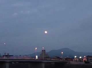 早起きし、日の出前に走りに出たら美しい満月を発見!!