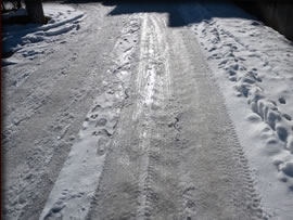 雪が積もり、少し溶けて、固まって。こんな感じ↓