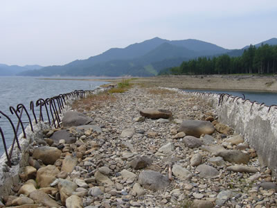 糠平湖の水かさが増える6月頃から湖面に沈み始め、