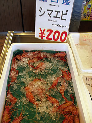 阿寒湖畔のお土産屋さんの店先で おじさんが