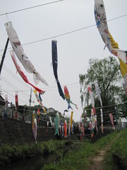 次の日は長屋門公園 瀬谷区長屋門公園にて ピクニックです。 池の鯉をジッと観察。水に触りたそうだったので、 せめて麩にしとけや。 「行こうか」 人形劇や五月人形、鯉のぼりなどのイベントが充実。 極めつけはこれ。