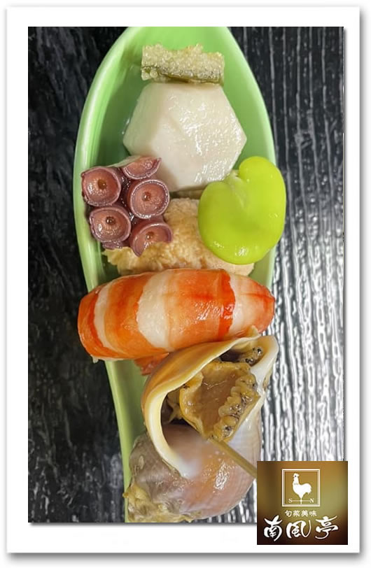 夏の特選料理の「前菜」をご紹介します。小さい笹皿にギッチリ詰め込みました。 ◆前菜・・・(子持ち昆布、六方里芋、 鯛真子煮、そら豆、つの字海老、蛸柔らか煮、磯つぶうま煮など) 2日前までの完全予約制 お2人〜 おひとり様¥8250(税込) 福島市南向台2-10-62 024-521-8535 です。 お電話 お待ちしております🙇