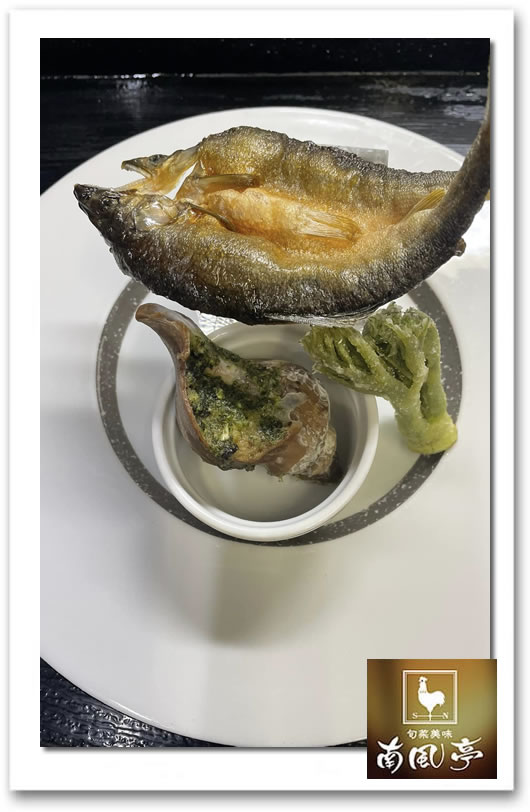 夏の特選料理「若葉」の一品、鮎せんべいキャビア添えと真つぶ貝のエスカルゴ風をご紹介します。鮎せんべいにクリスタルの中のキャビアをちょこちょこつけてぱりぱりお召し上がりください( ˙³˙)⇝💕 真つぶ貝も召し上がりやすく切ってぎっしり詰めてます。 ウロまでしっかりお召し上がりください😀