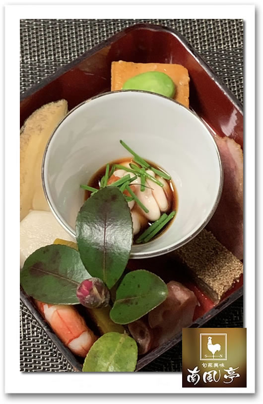 ✤てんこ盛り前菜 タラ白子ポン酢、鮟肝豆腐、 鮑酒蒸し、蛸柔らか煮、海老 合鴨カレー風味、松風など〜