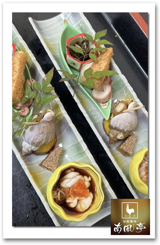 お元気ですか?南風亭です ✨✨今日のお任せコースから✨✨ 💚💚前菜 タラ白子ポン酢、鶏松風、さつま芋レモン煮、磯ツブ煮、蛸柔らか煮、早堀筍土佐煮、岩もずく💚💚 2日前までの予約になります💗 ✨✨福島市南向台2-10-62 南風亭✨✨ �お電話024-521-8535🍀 ご予約お待ちしております🙇‼