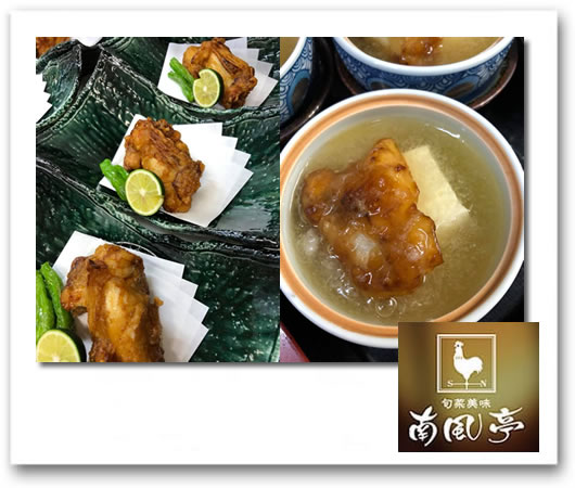 fumie【南風亭オリジナルとらふぐコース】の三枚目。左はみんな大好きフグ唐揚げ。右はフグ当座煮。