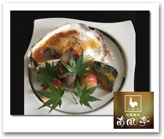 前菜(牡蠣の味噌焼き、磯つぶ旨煮、海老黄身すし、秋野菜いろいろ)