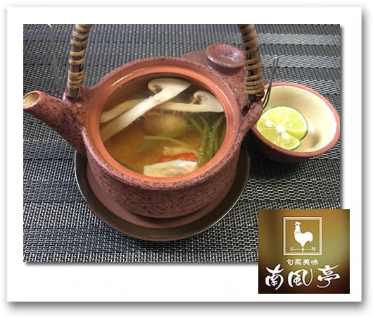 松茸の土瓶蒸し(松茸、はまぐり、エビ、鶏肉、三つ葉)