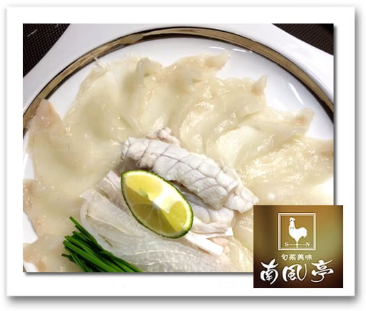 トラフグの美味しい季節が やって来ました✨✨ 南風亭のてっさ(ふぐ刺し)は身が厚い‼️ 食べごたえがあります🤩 これで一人前です✨✨