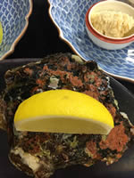 fumie 夏の特選料理の続き。 石巻のガゼ雲丹(甘くて美味しいですよね)⇒ 天然岩牡蠣 天候により入荷先が変わります。↓(下左)