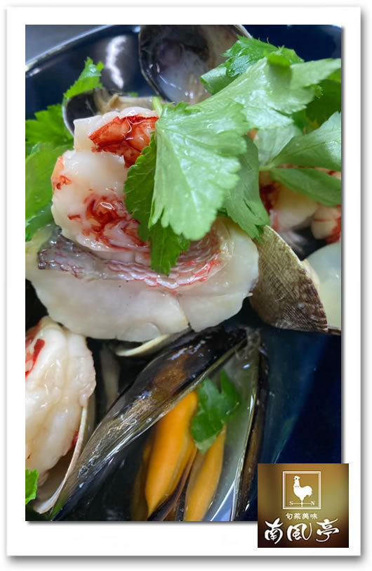 fumie 浅利、ムール貝、甘鯛、スカーレット海老のアクアパッツァ