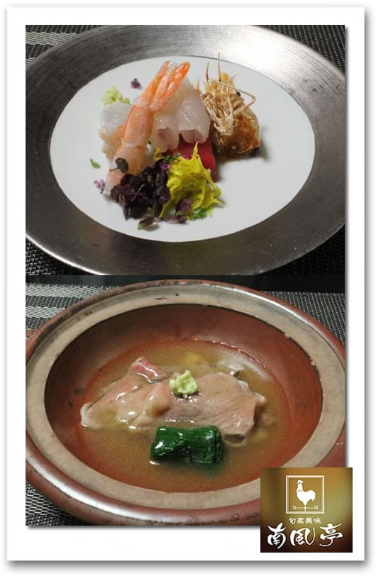 ④季節のお造り(⇒上段) 仕入れ状況により変わります。 ⑤福島牛(⇒下段) A5ランクのしゃぶしゃぶ 焼きナスの上に特製出汁をさっと くぐらせた和牛を載せ、熱々あんを かけてます。すりおろしたばかりの 山葵をまぶしてお召し上がりください
