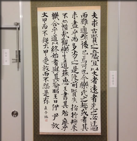 この「樂毅論」の原本は正倉院に納められていて、奈良時代の最高傑作と言われている物です。中国の戦国時代燕の将軍樂毅が深謀遠慮を述べた文章を光明皇后が臨書したものを私がまた臨書して…。