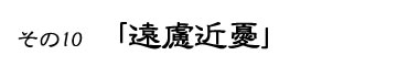「遠慮近憂」は、『論語』の衛霊公にある『人無遠慮 必有近憂』(人遠き慮(おもんばか)り無ければ、必ず近き憂ひ有り)が出典です。
