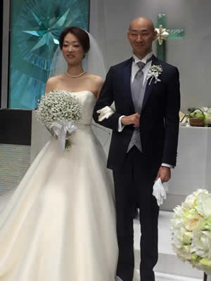 式も披露宴テーブルも新婦の意向で全てかすみ草! 奇遇にしては嬉しいー!