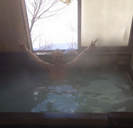 (※右の背景画像:安達太良スキー場)⇒ もちろん岳温泉源泉くろがね小屋の風呂に入ってAsahiをプッシュ!