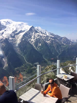 左上アイスクリームみたいのがモンブラン。下界はシャモニーの街。 フランスでハイネケンで乾杯(^o^)/ ユーロ、フランごちゃごちゃ(^。^)