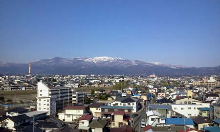 サクラは先週浜通り散り始め、今週中通り満開、今日会津咲きだしてます。 山並みの残雪が希望を膨らませてくれます。