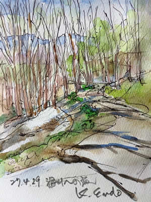 新緑ハイキング兼露天風呂兼ふきのとう採り兼スケッチ。