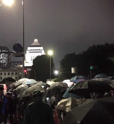 雨の国会議事堂前。叫ぶ熱気に気遅れ。 以下持論