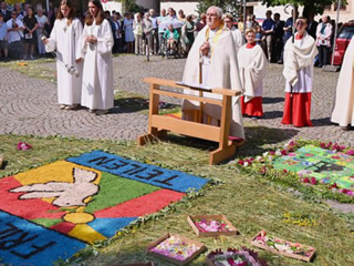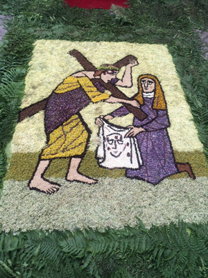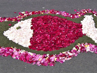 聖体祭には、この町の「花の絨毯」を見に、遠くからも多くの人が集まる。