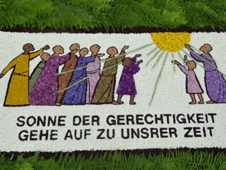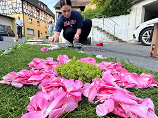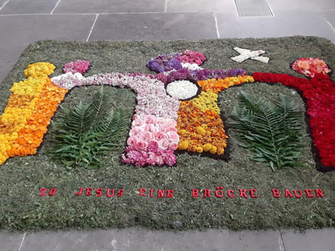 キリスト教のお祭りのひとつと捉えるならば、聖体祭の呼び物(?)は、なんと言っても、たった一日限りの Blumenteppich (ブルーメンテピヒ、花の絨毯)である。