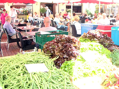 市場 (Wochenmarkt)は、それぞれの町ごとに 週1〜2回、早朝から昼頃まで開かれる。場所は町の中心、たいてい教会前の広場である。