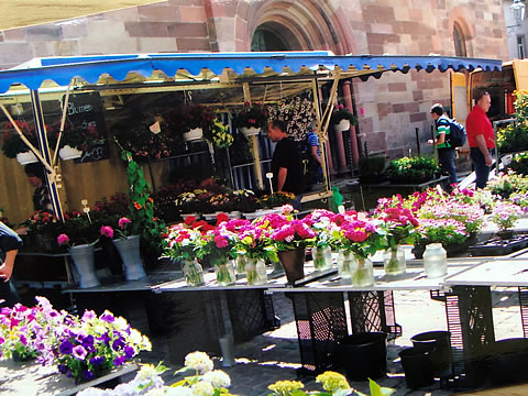 下は以前に紹介した、フィリンゲンの教会の建物を背にした、花屋さんのスタンド。