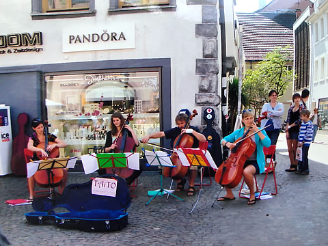 裏の市場から街の通りに出てみると、若者4人(たぶん音大生)が演奏していた。曲目は覚えていないが、結構上手。手前のチェロのケースに心付けを入れた。