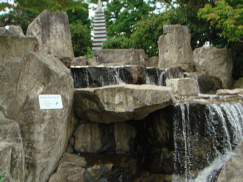 街の中心から少し離れた公園に、松山から造園業者が来て作ったという日本庭園がある。