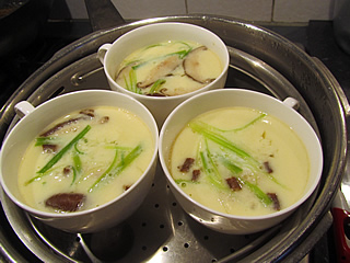 蒸し器がないので、あり合わせの物を組み合わせ、何とか成功。茶碗蒸しならぬ「ティーカップ蒸し」である。