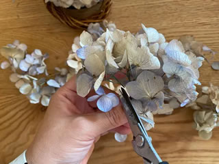 初めて作るリース、手取り足取り、丁寧に教えてもらった。あの美しい紫陽花のリースが自分の手から生まれたときは、ほんとうにうれしかった。