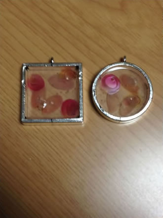 彼女へのお返し(プレゼント)として、桜貝を使ったレジンアクセサリーを作ってみた。 (※右の背景画像)⇒