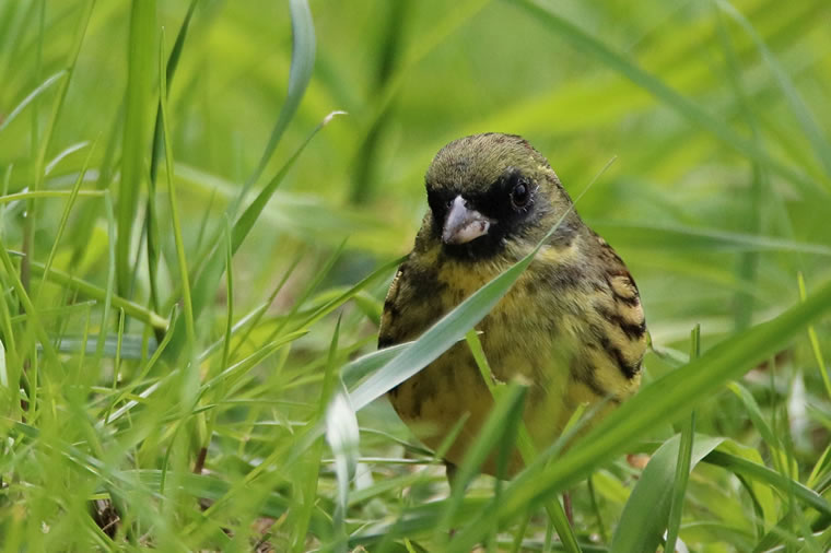 スズメとほぼ同じ大きさのアオジ。 全国的に見ることができるアオジですが、いくつかの県ではレッドデータ(絶滅の懸念がある動物のリスト)に載る危惧種として指定されています。現在も個体数は減少傾向にあるようです。