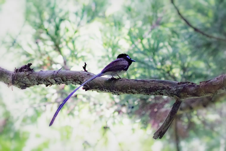 全長は雄(♂)が約45cm(繁殖期)、雌(♀)が17.5cm。繁殖期のオスは、体長の3倍ぐらいの長い尾羽を持ってます。日本、フィリピンなどに分布し、日本には夏に渡来して繁殖し、冬季は中国南部からスマトラへ渡り越冬します。