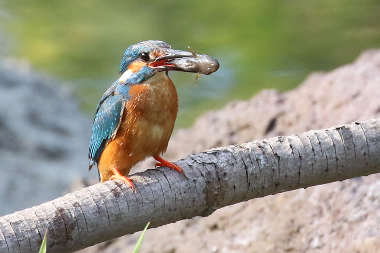 親鳥が魚を捕えましたが、自分で食べずに巣に“お持ち帰り”のようです。
