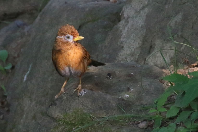 ムクドリとコムクドリが去ってしばらくすると、ガビチョウが現れました。