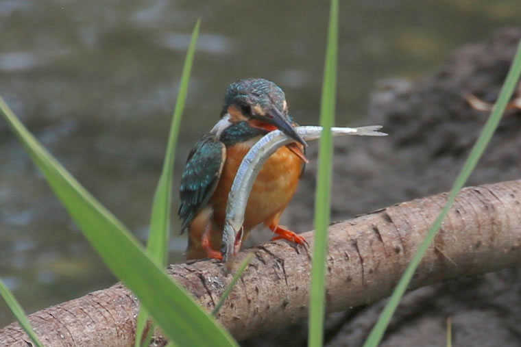 自分より大きな大きな獲物を捕らえたカ ワセミさん。こんな大物を果たして呑み込めるでしょうか?