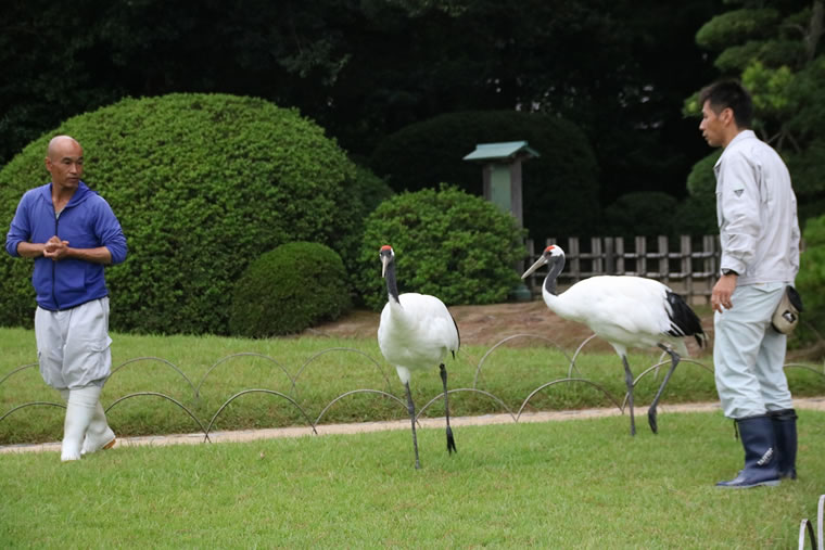 タンチョウは、お正月の放鳥の2~3ヶ月前から、開園時間前に訓練を行い、庭の様子を覚えさせながら、飼育員とタンチョウがコミュニケーションをはかり、信頼関係を築いていくと、後でネットで調べて分かりました。
