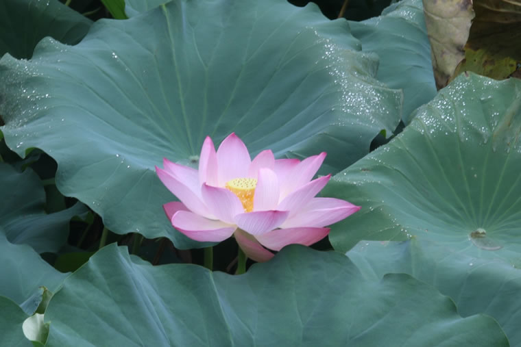 西日本豪雨で冠水したハスが庭園の片隅で美しく咲いてました。