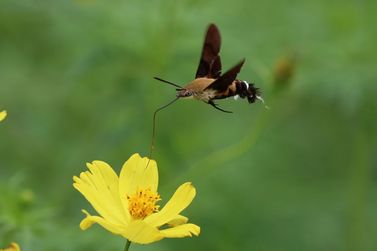 これも同じように、ホバリングして、花の蜜を吸う“ホウジャク”です。