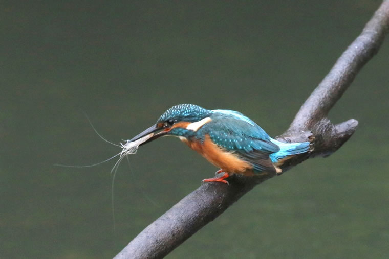魚は鱗が引っかからないように頭から呑み込むのですが、海老はヒゲが邪魔なようで、しっぽの方から呑み込みました。