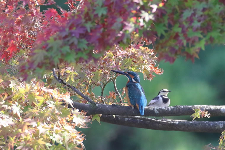 紅葉したモミジをバックにカワセミが撮 れると聞いて、少し遠いですが、横浜市 内の公園に遠征しました。
