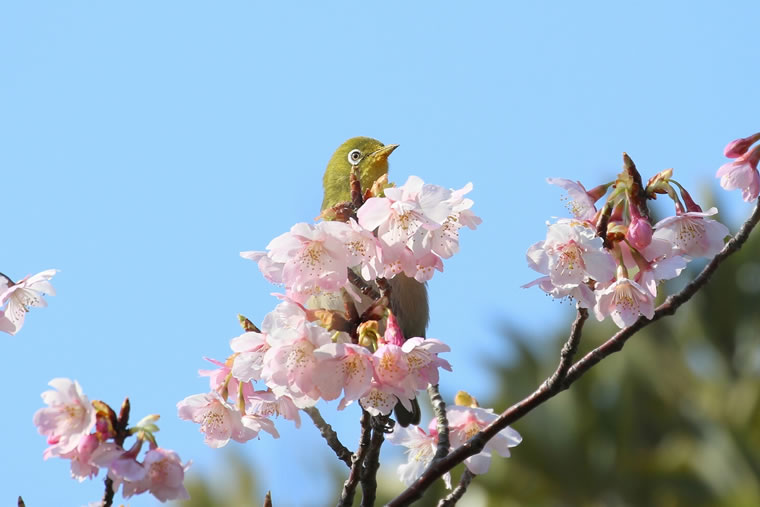 メジロは動きがすばしこいので、カメラで追いかけるのが一苦労です。